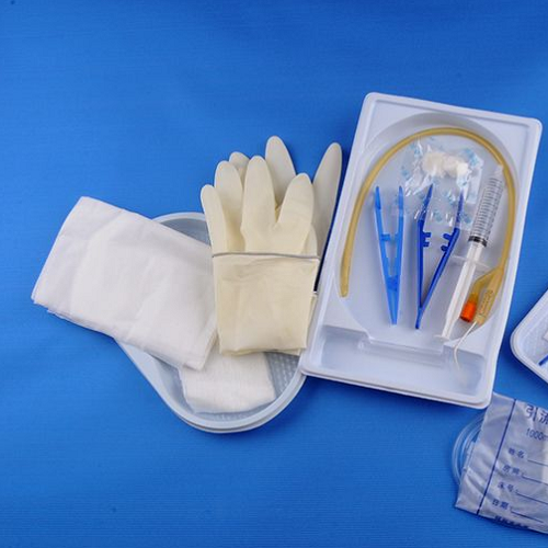 2.打开包装,展开包布,戴上手套,按临床常规依次使用导尿包内组件。
